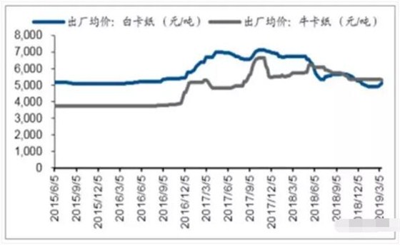 ▲白卡紙、牛卡紙價(jià)格變化