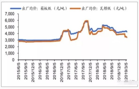 ▲箱板紙、瓦楞紙價(jià)格變化