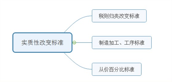 實質(zhì)性改變的確定標準,以稅則歸類改變?yōu)榛緲藴?,稅則歸類改變不能反映實質(zhì)性改變的,以從價百分比、制造或者加工工序等為補充標準。
