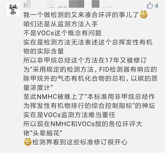 早期的環(huán)評報告往往是以非甲烷總烴(NMHC)為排放因子,而以總揮發(fā)性有機物(TVOC)為質(zhì)量評價因子,那時候兩者還沒有文件確認(rèn)他們都可以表征VOCs,但現(xiàn)在看起來是科學(xué)的。