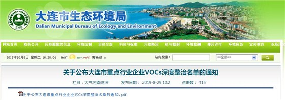 為貫徹落實(shí)《大連市重點(diǎn)行業(yè)揮發(fā)性有機(jī)物深度整治工作方案》,大連市生態(tài)環(huán)境局組織篩選出了大連市涉VOCs重點(diǎn)行業(yè)企業(yè),此次先行公布第一批、第二批深度整治企業(yè)名單。此名單將根據(jù)實(shí)際情況動(dòng)態(tài)調(diào)整,后續(xù)整治名單將陸續(xù)公布。